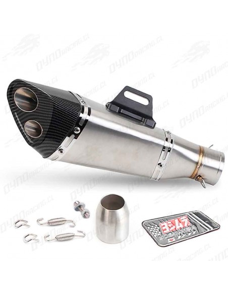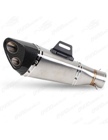 ESCAPE DE ACERO INOXIDABLE GRIS, CON PUNTA DE IMITACION DE CABONO